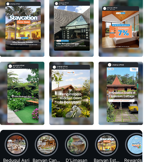 PinginGo membantu para pecinta perjalanan dari anak muda hingga dewasa menemukan penginapan bertema Beauty of Nature, Unique Accommodation, dan Hidden Gem di seluruh Indonesia. Seiring tren staycation yang semakin diminati, kami hadir untuk mempermudah pencarian akomodasi yang memikat dan tak terlupakan.